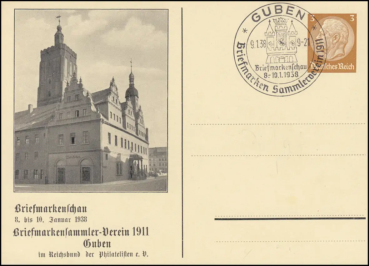 PP 122 Timbres - BSV 1911 Güben Hôtel de ville 9.1.1938