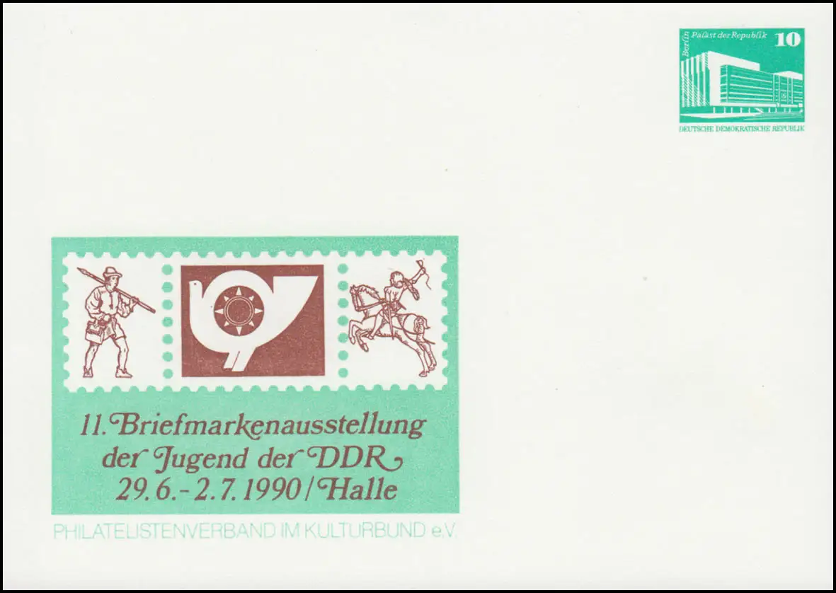 II. Exposition des timbres de la jeunesse de RDA dans le hall / Saale / Figure: Emblème, Postbote, Pokrieger Numéro de catalogue: PP17/110 Examen: original Référence produit: 47056001799111