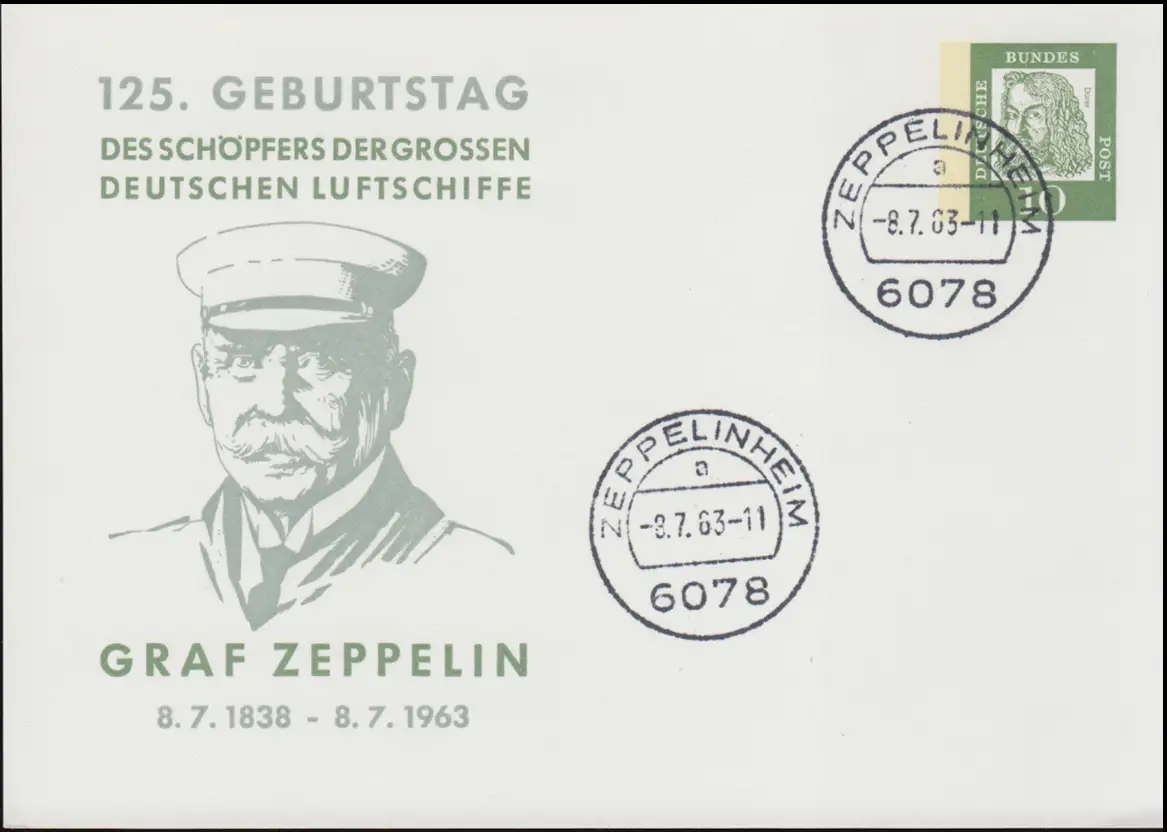 PP 28/8 anniversaire du comte Zeppelin, Tampon quotidien ZEPPELINHEIM 8.7.1963