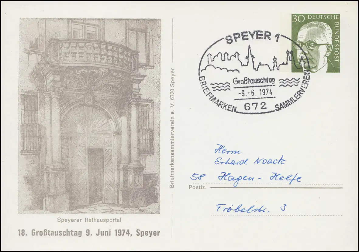 PP 46/17 Grand jour de l'échange Speyer, Portail de la mairie, SST SPEYER 9.6.74
