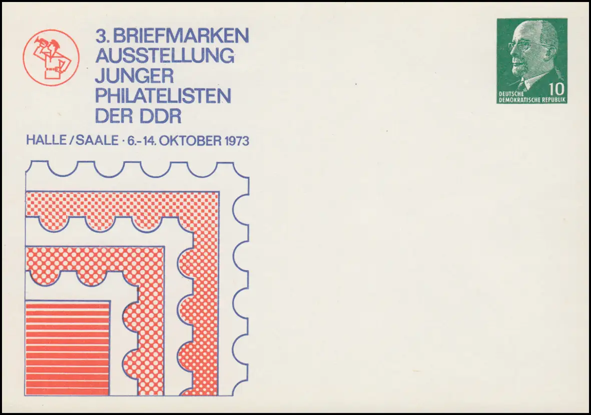 PP 8/101 Ulbricht 10 Pf Exposition Petit trompettiste 1973, SSt HALLE 1973