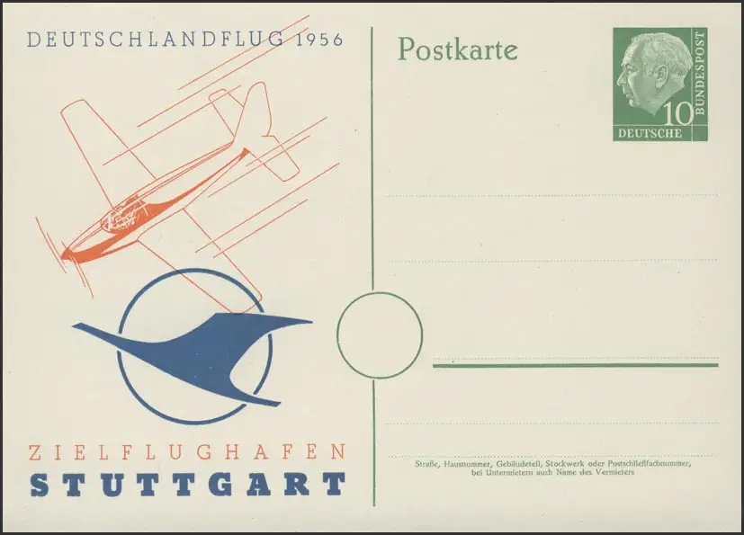 PP 8/7 Heuss 10 Pf Aéroport de destination Stuttgart Aéronefs et Aeroclubs **