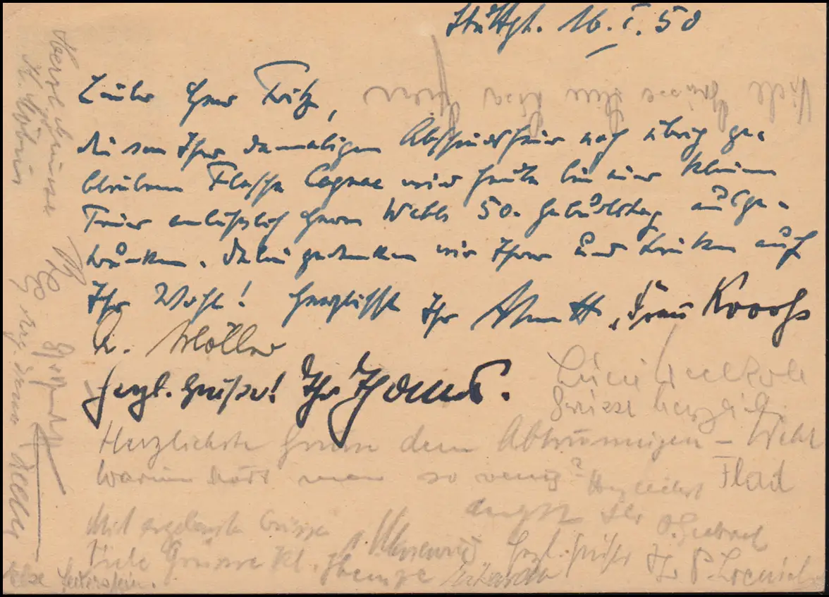 au professeur Dr. Ernst Fritz, Hambourg avec beaucoup de dédicaces personnelles / salutations à l'anniversaire de 50 ans Numéro de catalogue: PSo1 Examen: original Référence produit: 00000000034316>Note: Cet article n'est disponible qu'une seule fois. Vous recevrez exactement l 'article représenté.