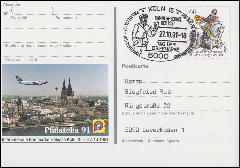 PSo 25 Messe de Cologne Philatelia, SSt Cologne Journée du timbre & Postbot 27.10.1991