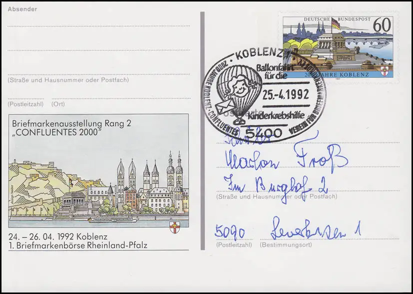 PSo 26 Foire Coblence, SSt Coblenz Ballon de soutien au cancer des enfants 25.4.1992