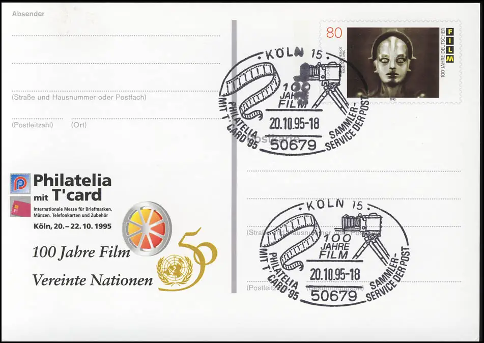 PSo 39 PHILATELIA Cologne Film et ONU 1995, SSt Cologne Caméra de film 20.10.95