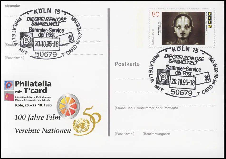 PSo 39 PHILATELIA Cologne Film et ONU 1995, SSt Cologne Recueil de données 20.10.95