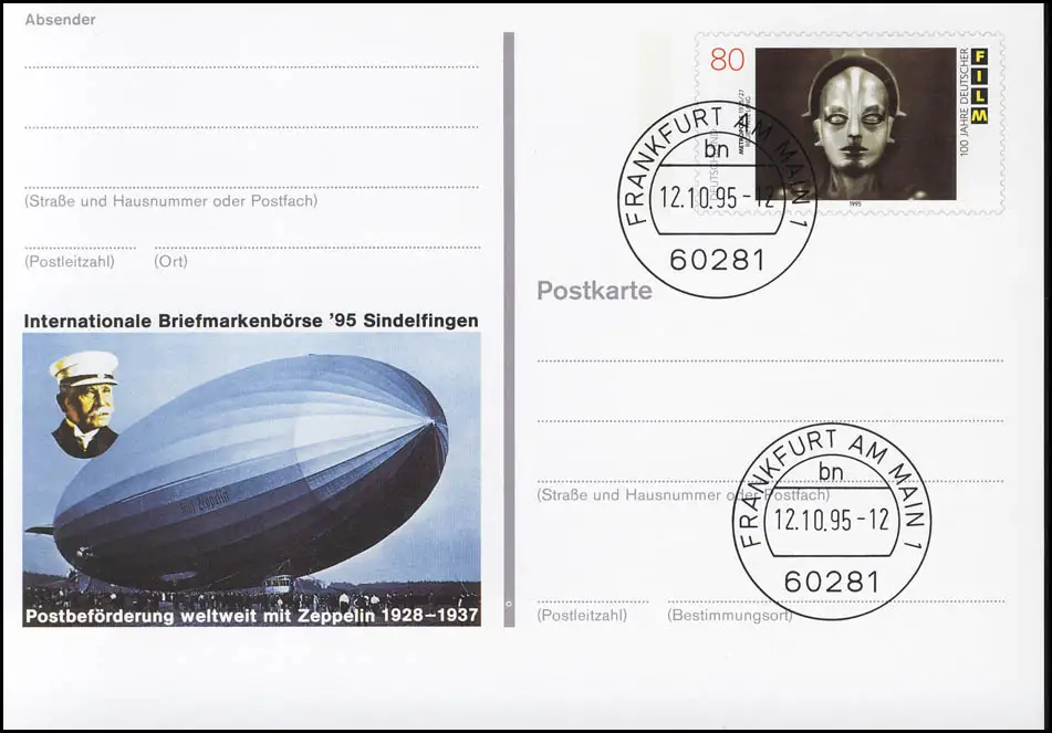 PSo 40 Bourse des timbres Sindelfingen Zeppelin 1995, VS-O Frankfurt 12.10.1995
