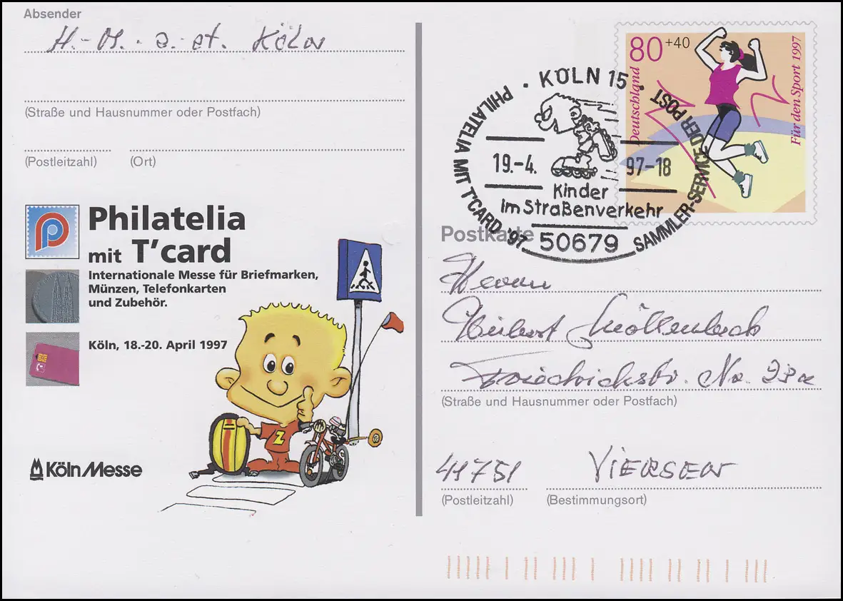 PSo 45 Philatelia Cologne avec T'card SSt Enfants dans la circulation routière 19.4.97