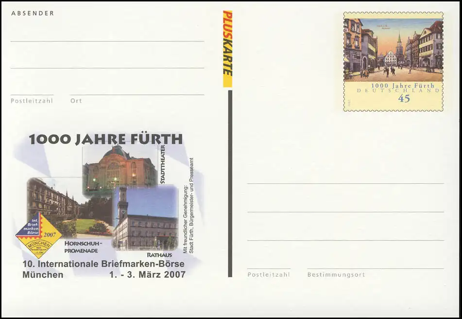 PSo 95 Bourse des Timbres Munich - 1000 ans Fürth 2007, **