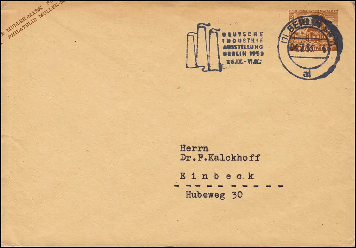 PU 1/5a Constructions 4 Pf MÜLLER-MARK, Exposition de publicité O Industrie BERLIN 4.7.53