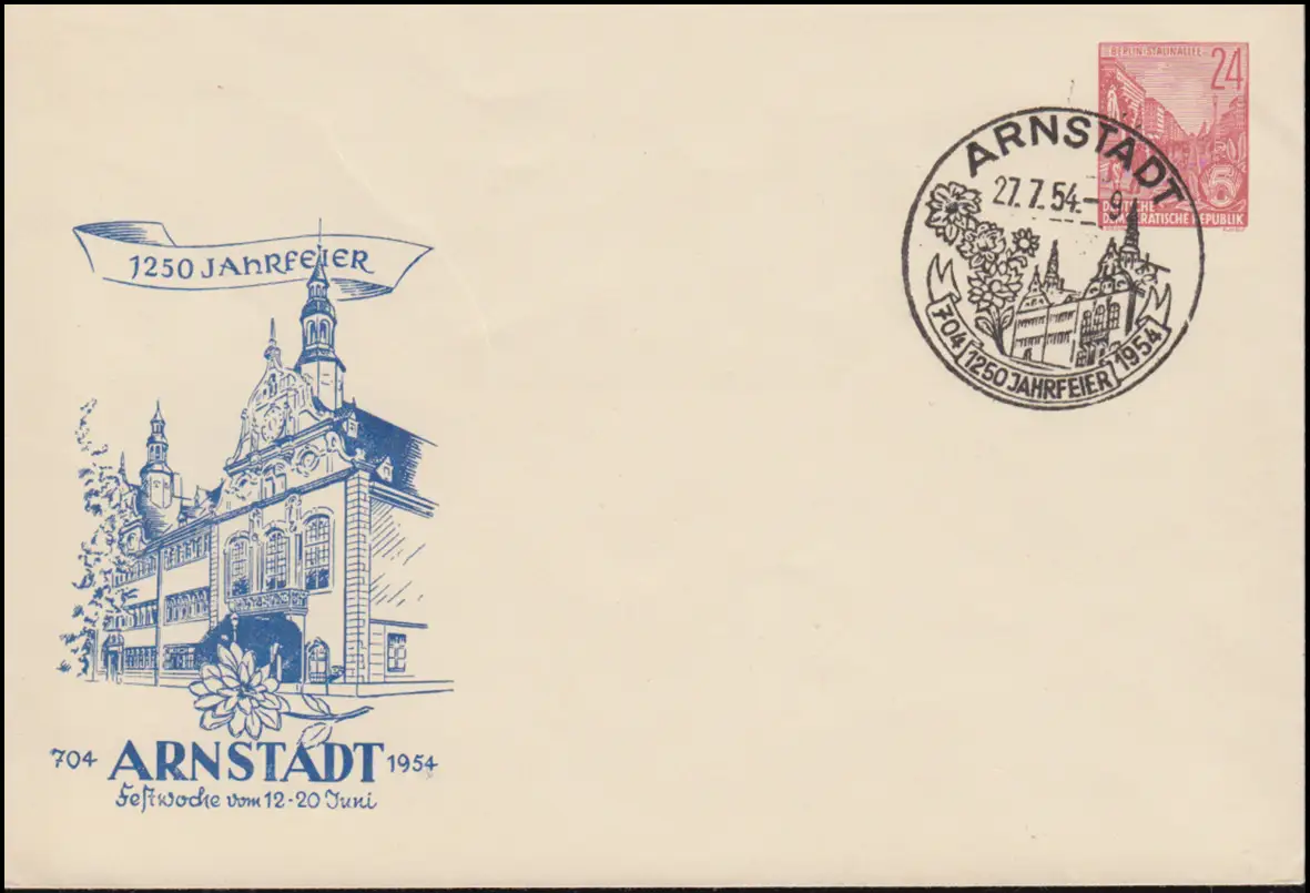 PU 12 Plan quinquennal 24 Pf 1250 Anniversaire Arnstadt 1954, SSt ARNSTADT 1954