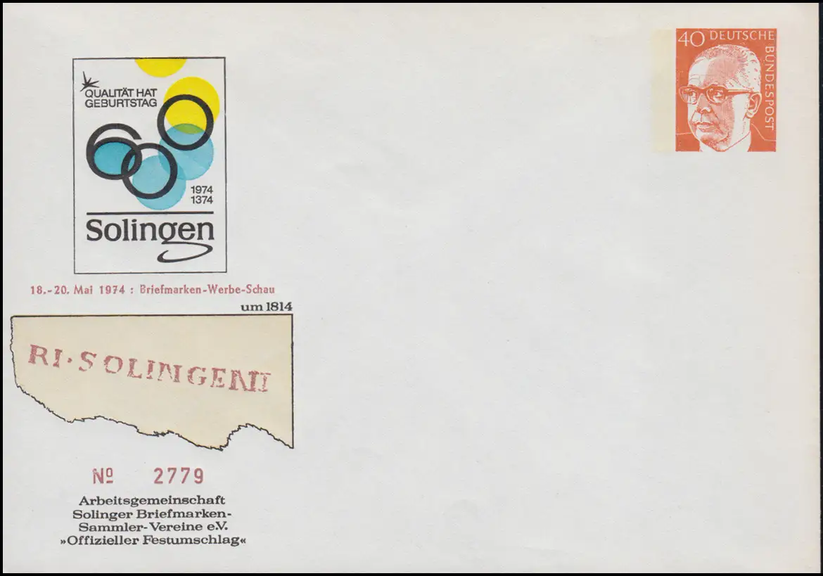 PU 53/29 Examen des timbres 600 ans Solingen 1974, inutilisé **
