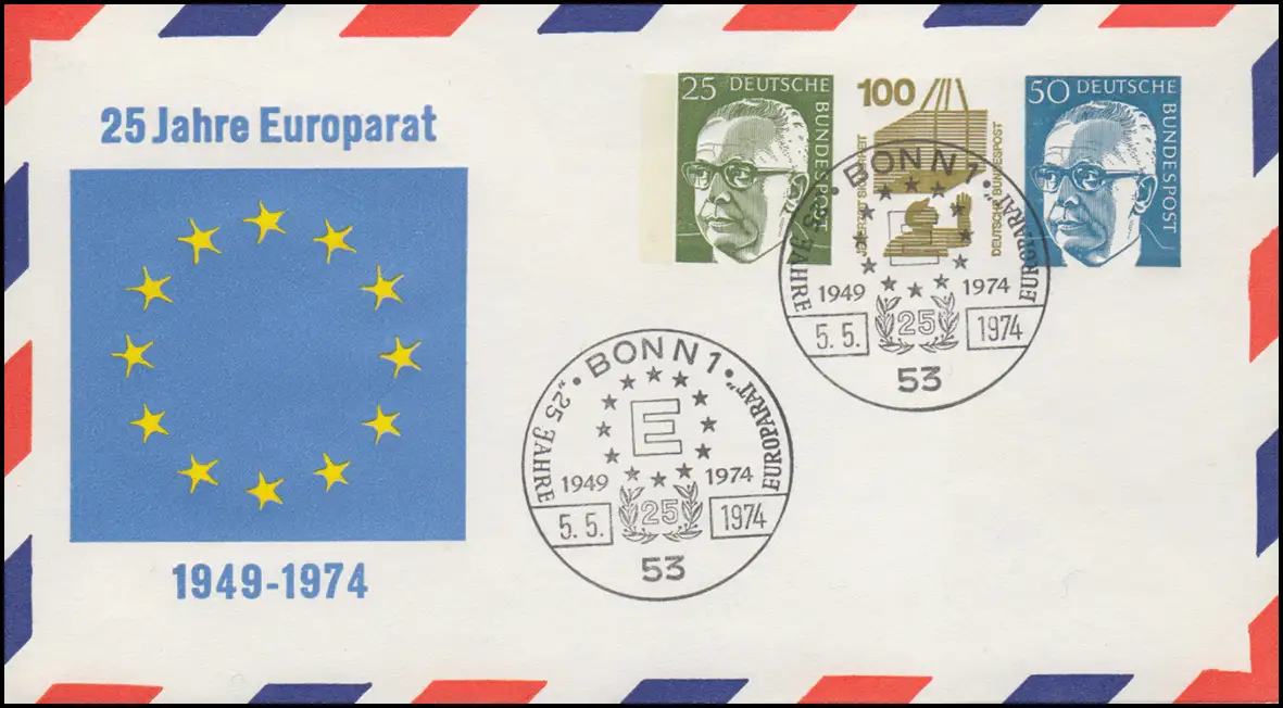 PU 60 25 ans Conseil de l'Europe 1949-1974, SSt BONN 12 étoiles 5.5.1974