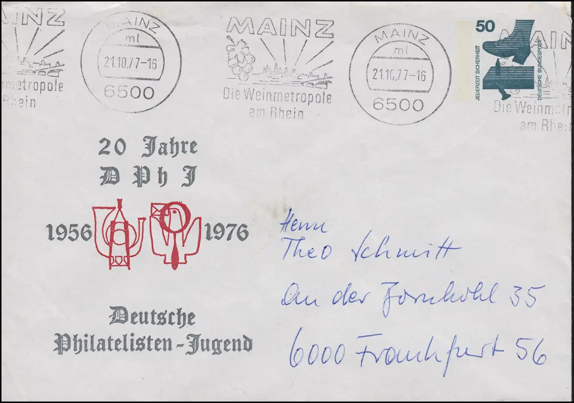 PU 65/47 Accident 50 Pf. 20 ans DPhJ 1956-1976, MAINZ 21.10.1977 après Francfort
