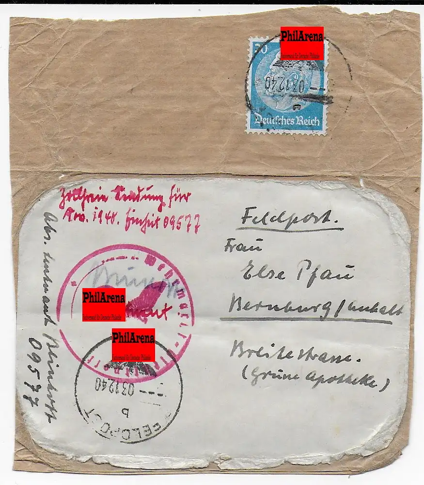 Envoi mensuel gratuit de colis 1940 Poste de campagne No 09577 vers Bernburg