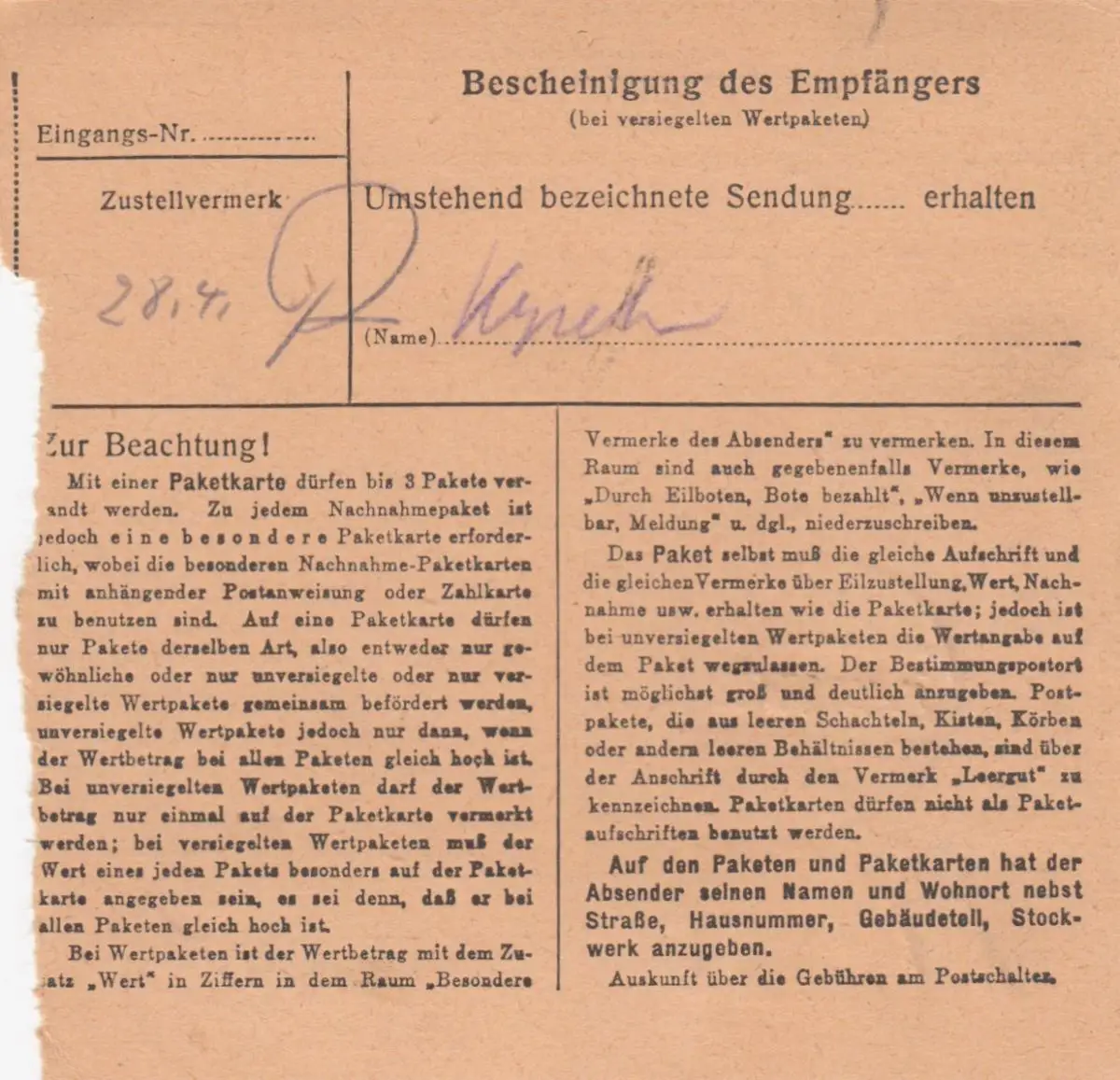 Carte de paquet 1947: Almdorf Marburg vers Bad Aibling, carte de valeur