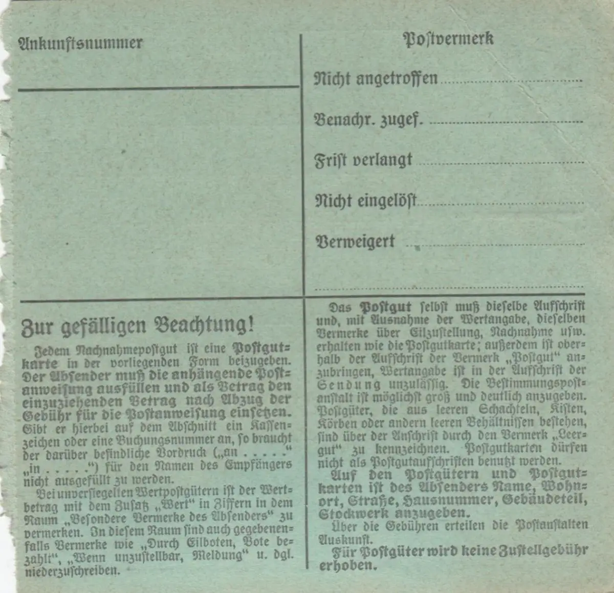 Carte de paquet 1947: Augsbourg n. Biberg, Machines agricoles, Nachn., bes. Formulaire
