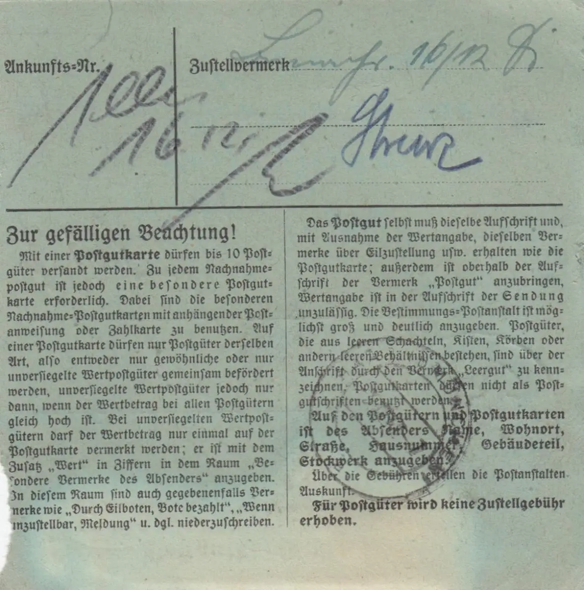 Carte de paquet 1947: Berlin-Charlottenburg vers Ottendihl, bes. Formulaire