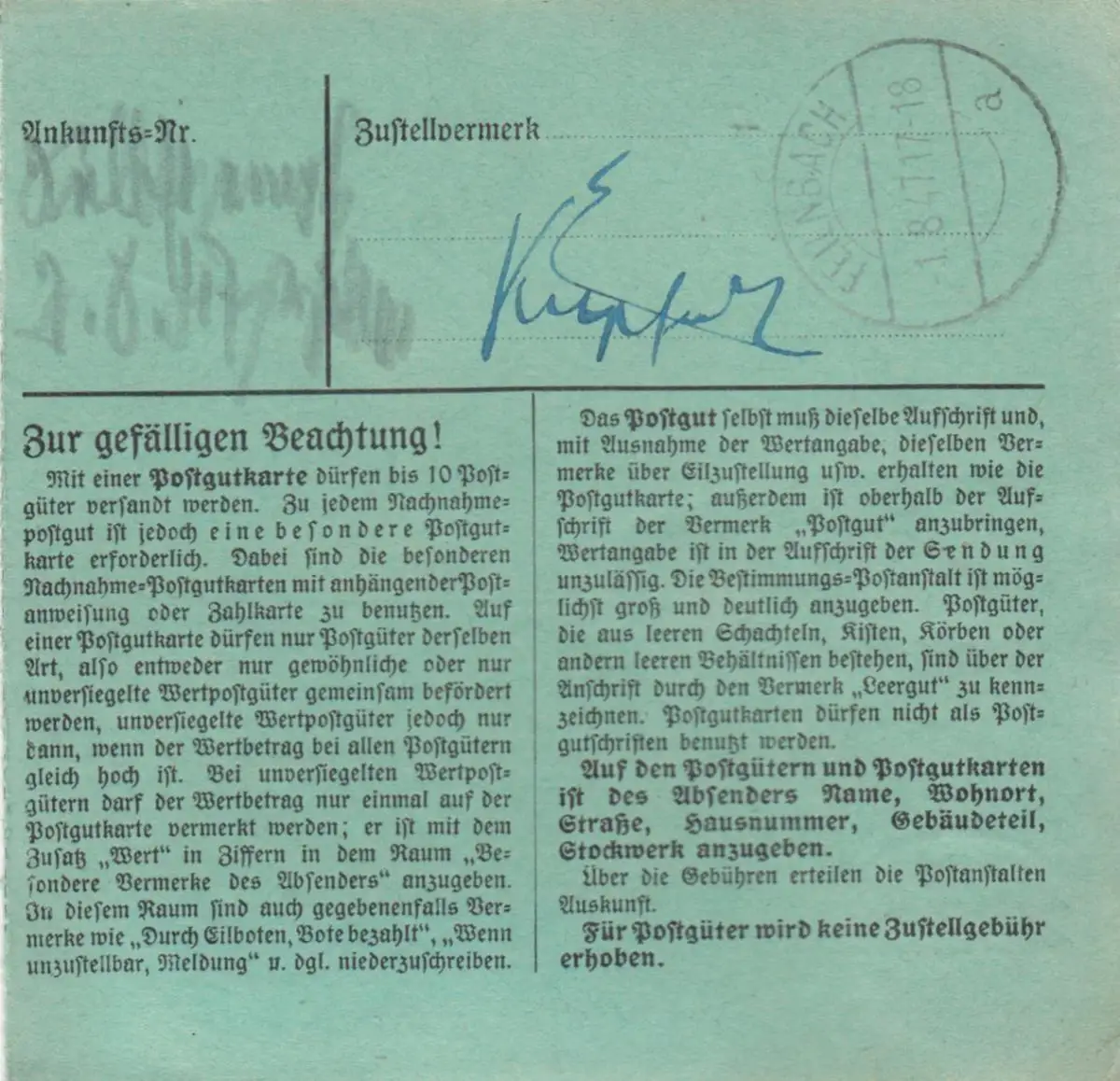 Carte de paquet 1947: Berlin-Steglitz vers Feilnbach, formulaire spécial