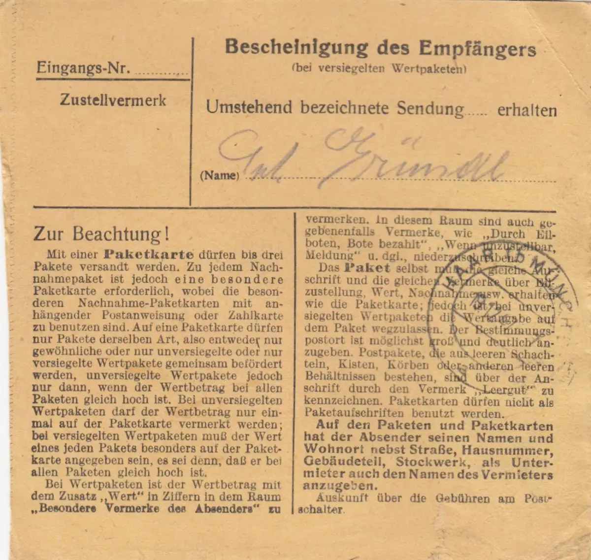 Carte de paquet 1947: Darmstadt Land apres Eglfing Haar, Anstalt
