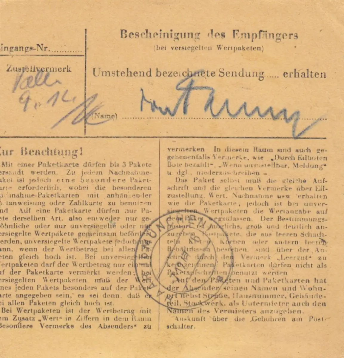 Carte de paquet 1947: Francfort-Süd, Köster AG après Haar