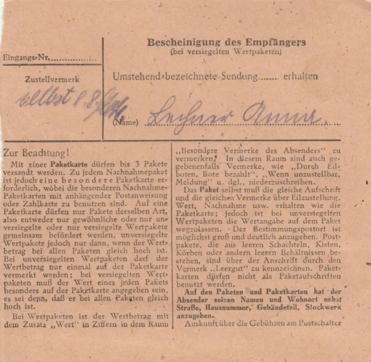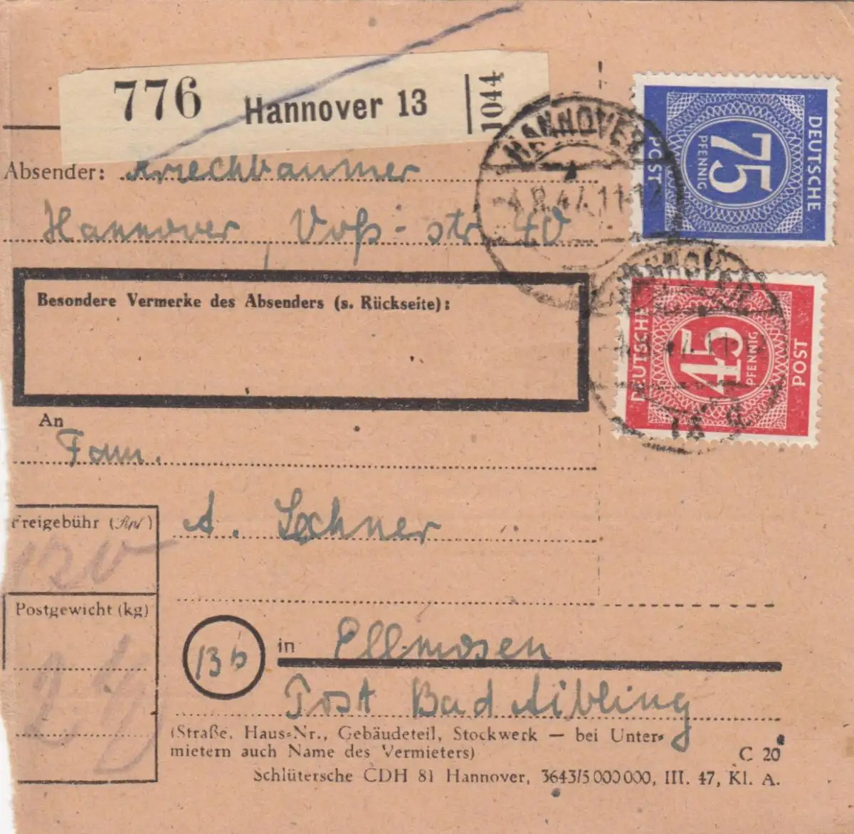 Carte forfait 1947: Hanovre d'après Ellmosen Bad Aibling