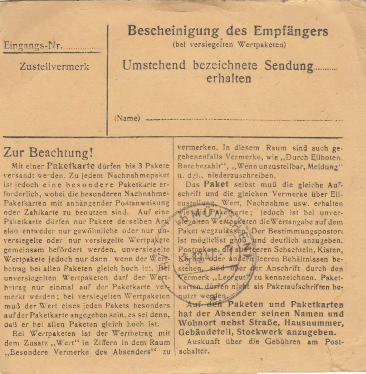 Carte de paquet 1947: Lochham d'après Eglfing, asile
