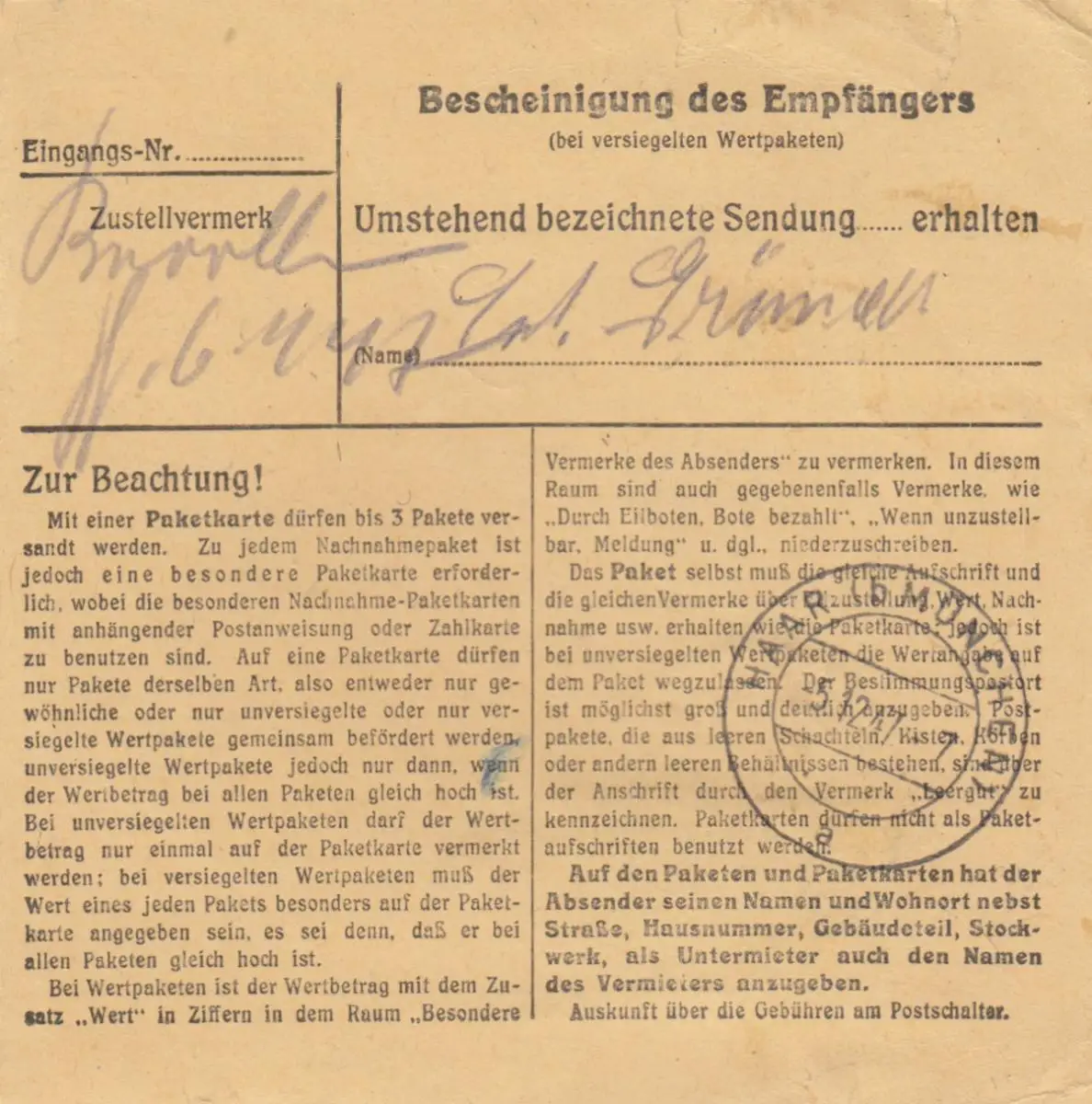 Carte de paquet 1947: Munich Pasing après Haar, soin de la santé