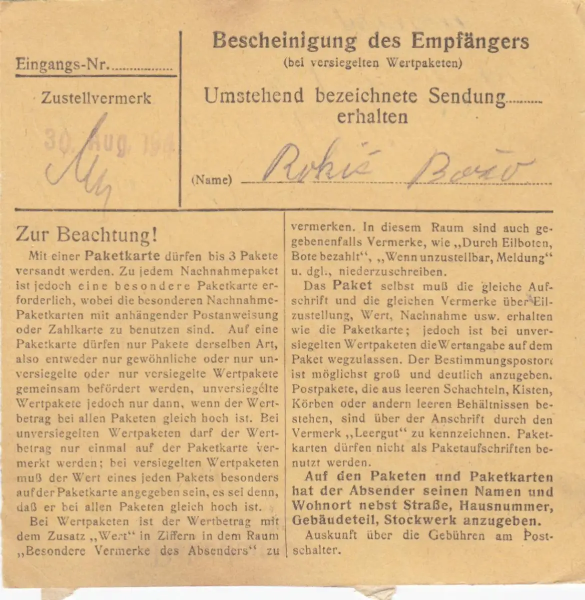 Carte de paquet 1947: Rettenbach Autenzell vers Bad Aibling, Aérodrome