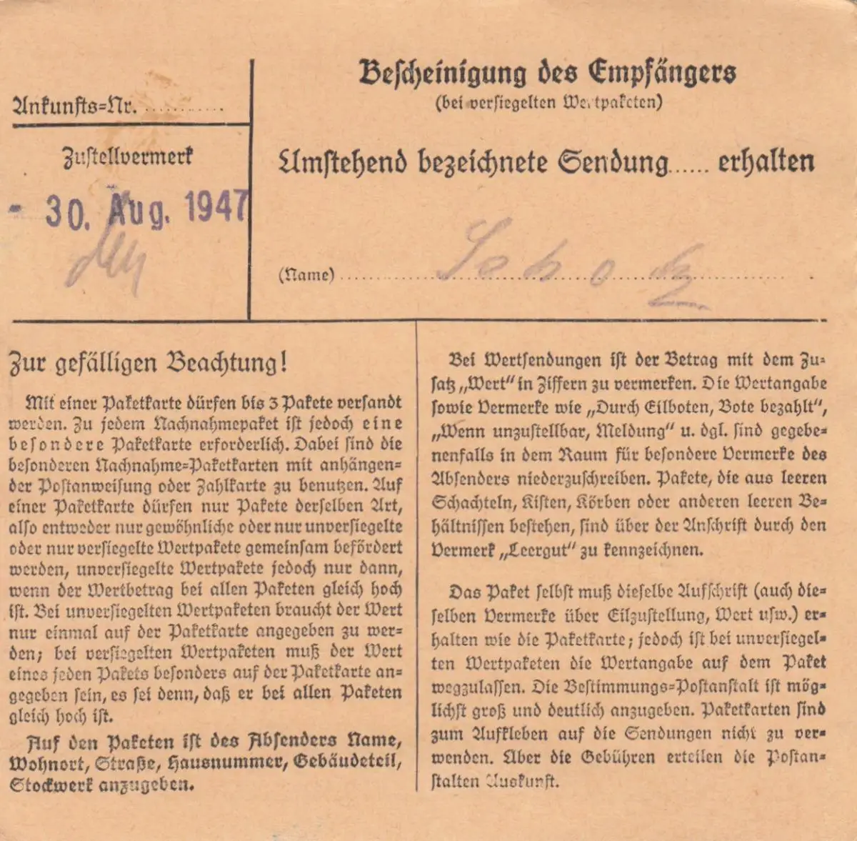 Carte forfait 1947: Stuttgart vers Bad Aibling, Kurhaus Schloss