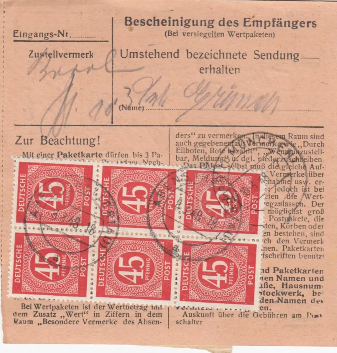 Carte de paquet 1948: Abens Hallertau par Cheveux