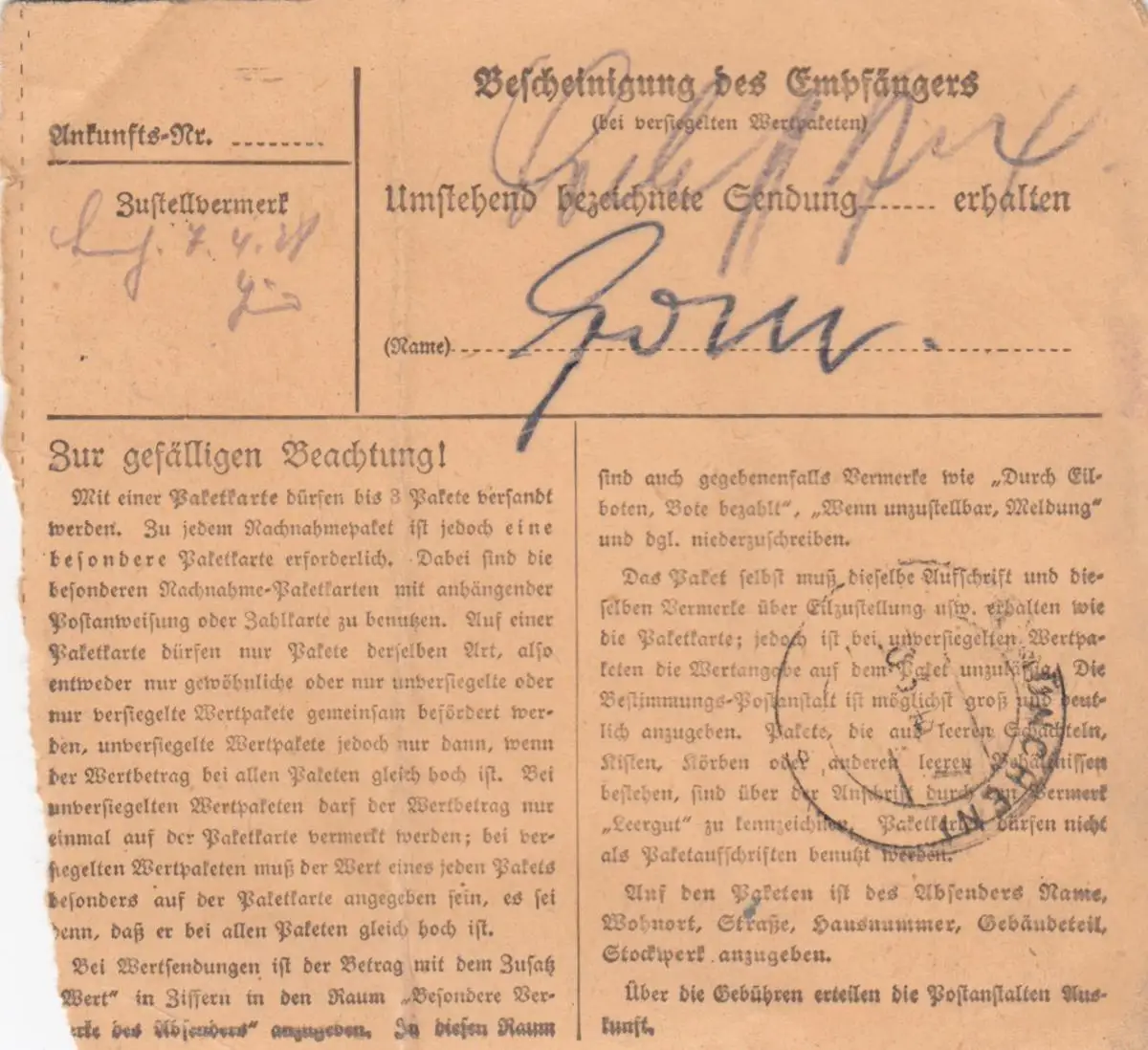 Carte de paquet 1948: Ahaus par Haar