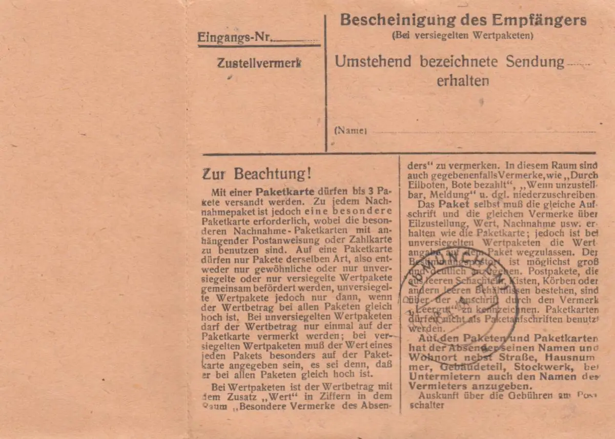 Carte de paquet 1948: Augsbourg 8 par cheveux