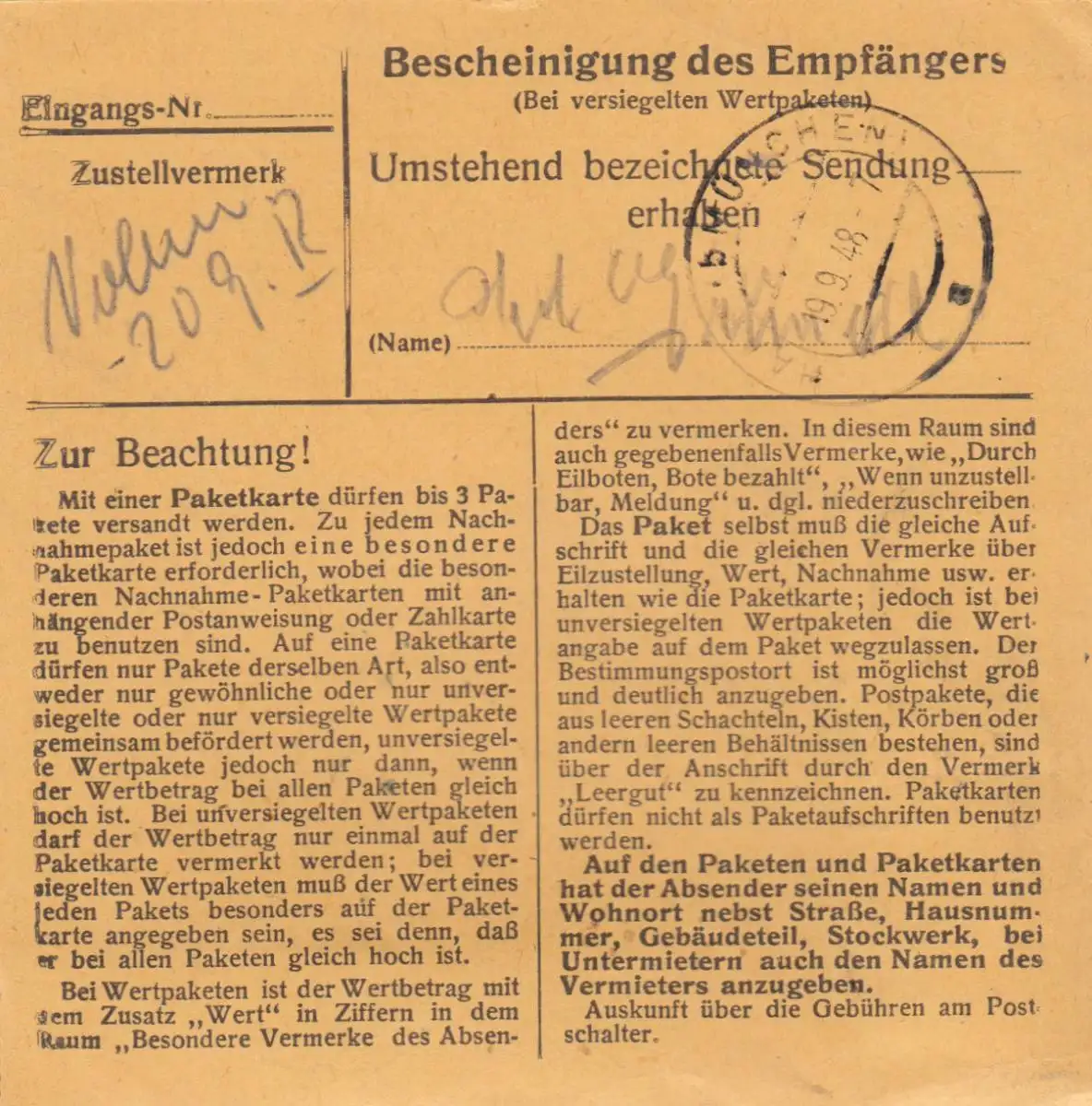 Carte de paquet 1948: Berchtesgaden par cheveux, établissement