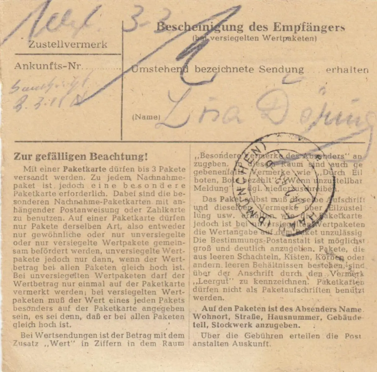 Carte de paquet 1948: Berlin-Lichterfelde après Haar bei Munich