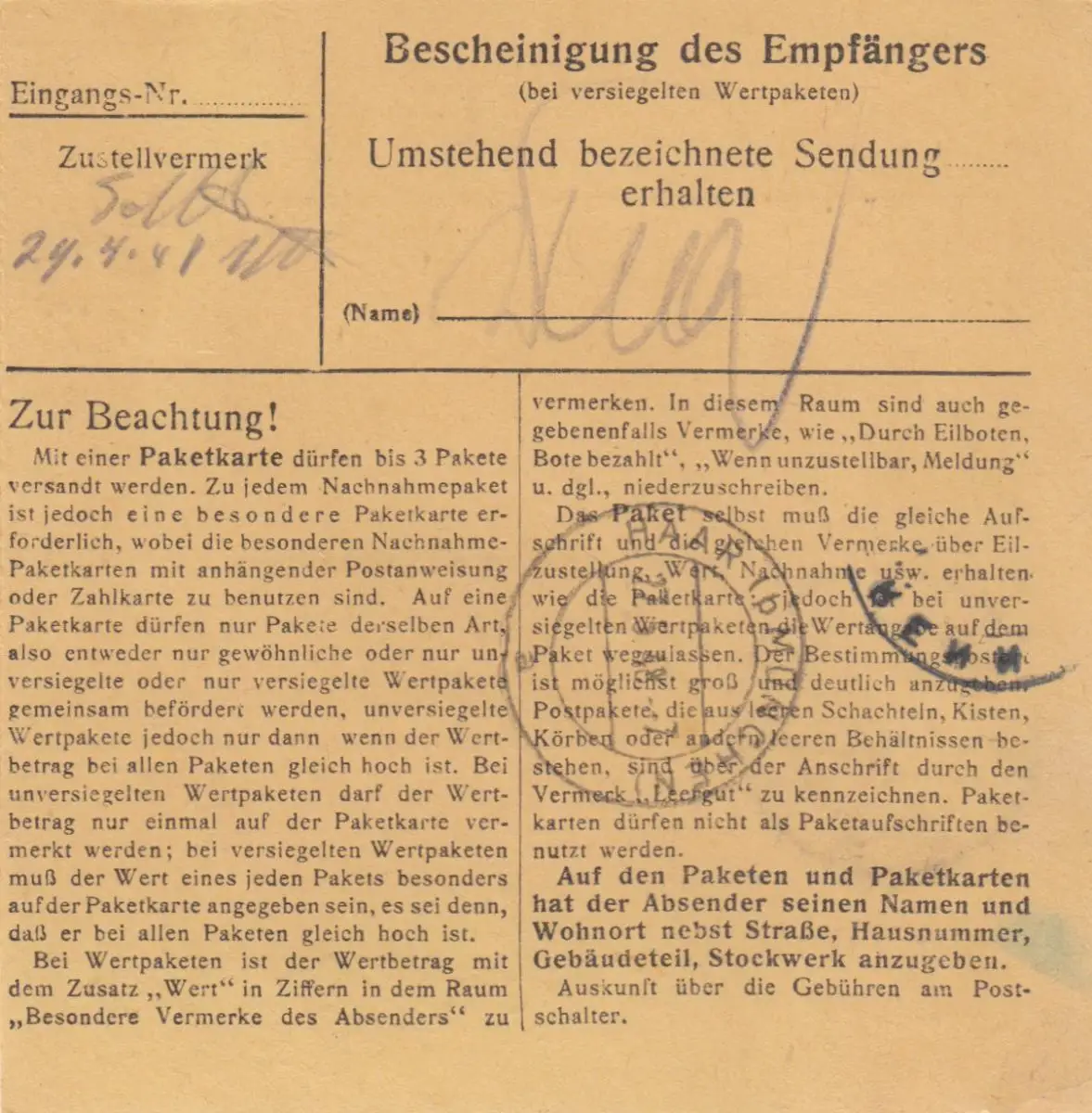 Carte de paquet 1948: Brennberg par Haar, carte de valeur