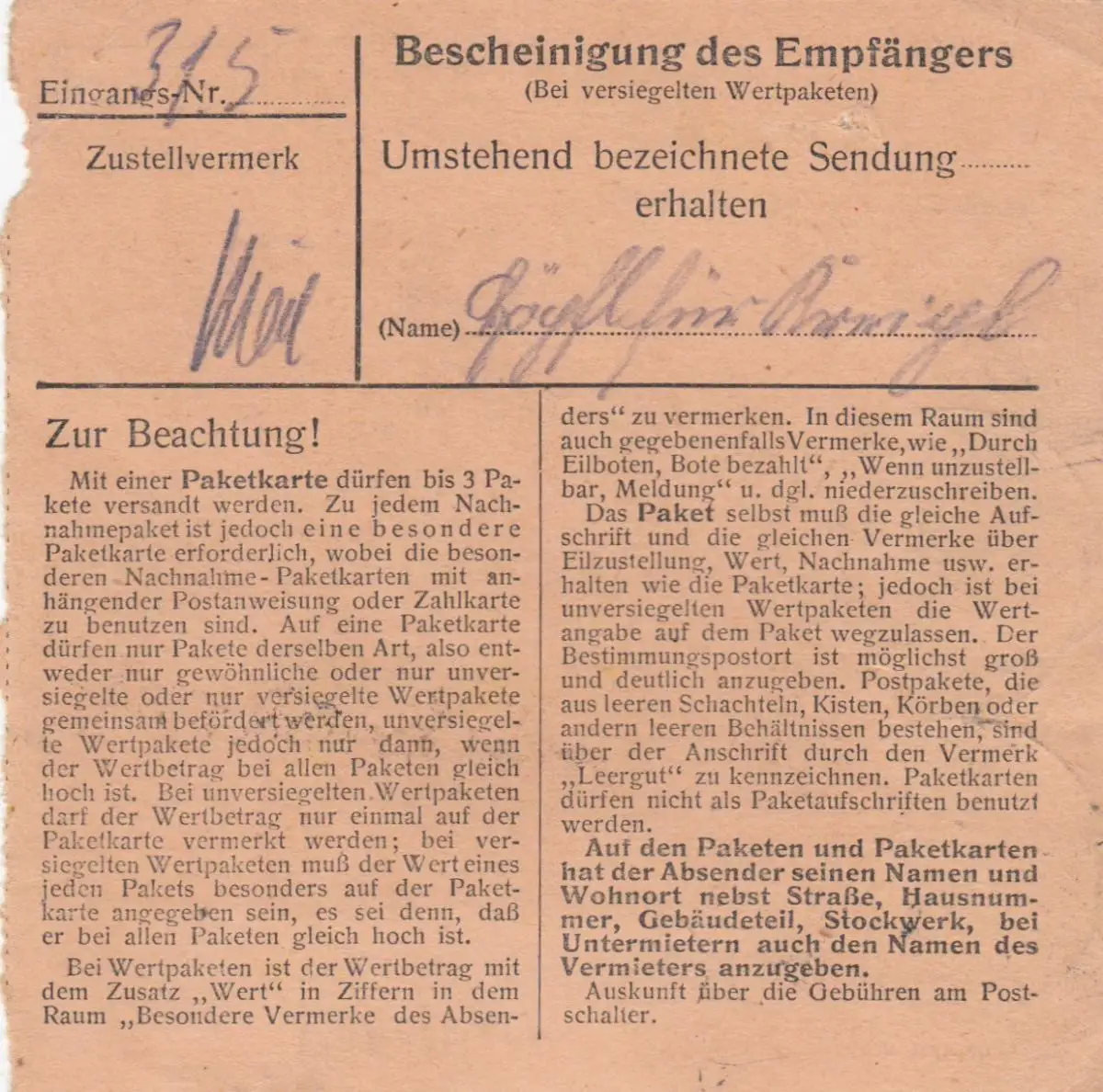 Carte de forfait 1948: Burggen Schongau vers Munich