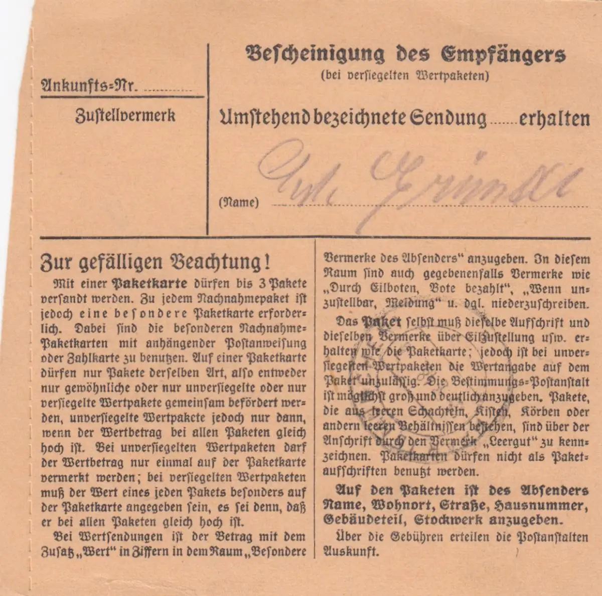 Carte de paquet 1948: Eggstett selon l'établissement Haar