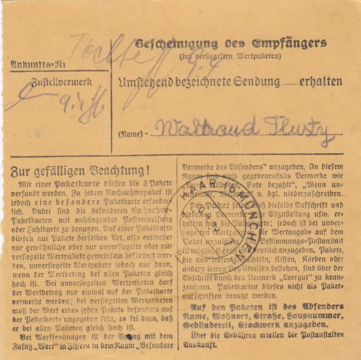 Carte de paquet 1948: Echelle Schernfeld par cheveux, carte de valeur
