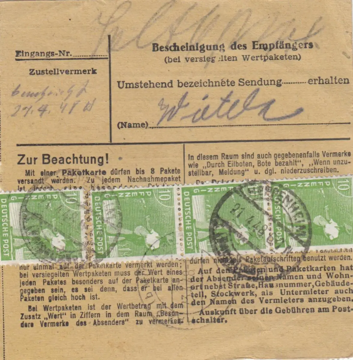 Carte de paquet 1948: Appareils électriques Heppenheim par cheveux