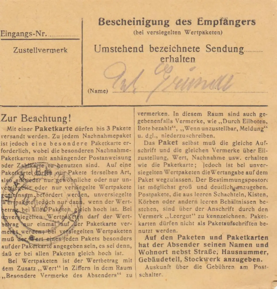 Carte de paquet 1948: Erding vers Eglfing, établissement de soins infirmiers