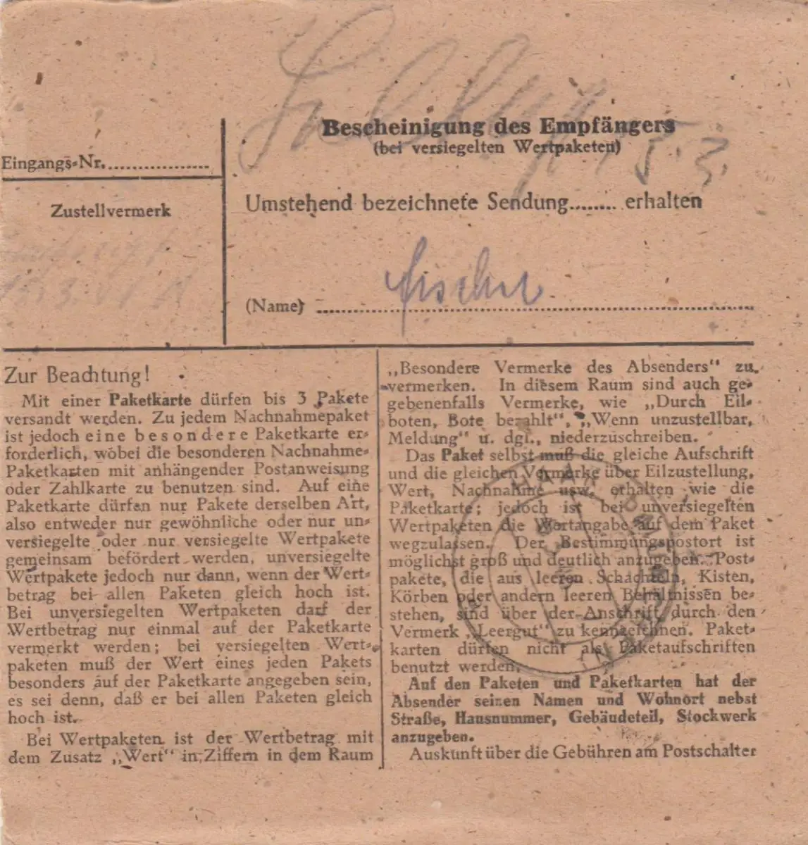 Carte de paquet 1948: Hanovre après Haar b. Munich, Espace
