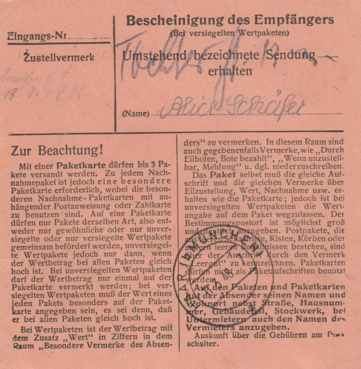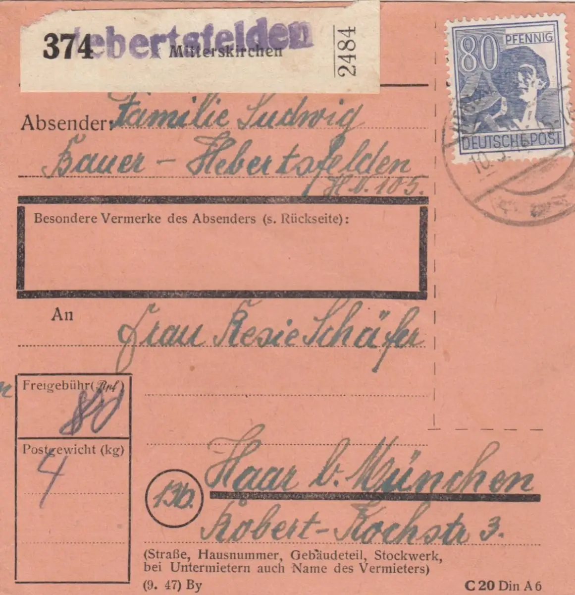 Carte de paquet 1948: Hebertsfelden après Haar bei Munich