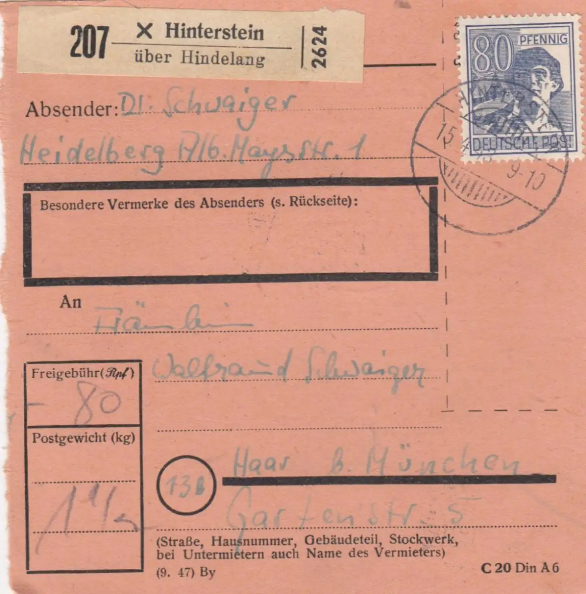 Carte de paquet 1948: Heidelberg sur la pierre arrière après les cheveux