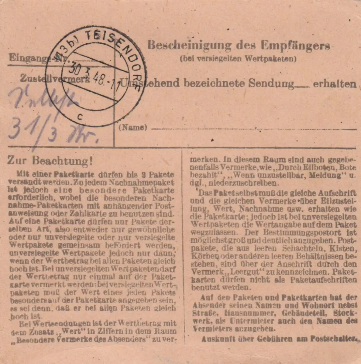 Carte forfait 1948: Heppenheim vers Teisendorf