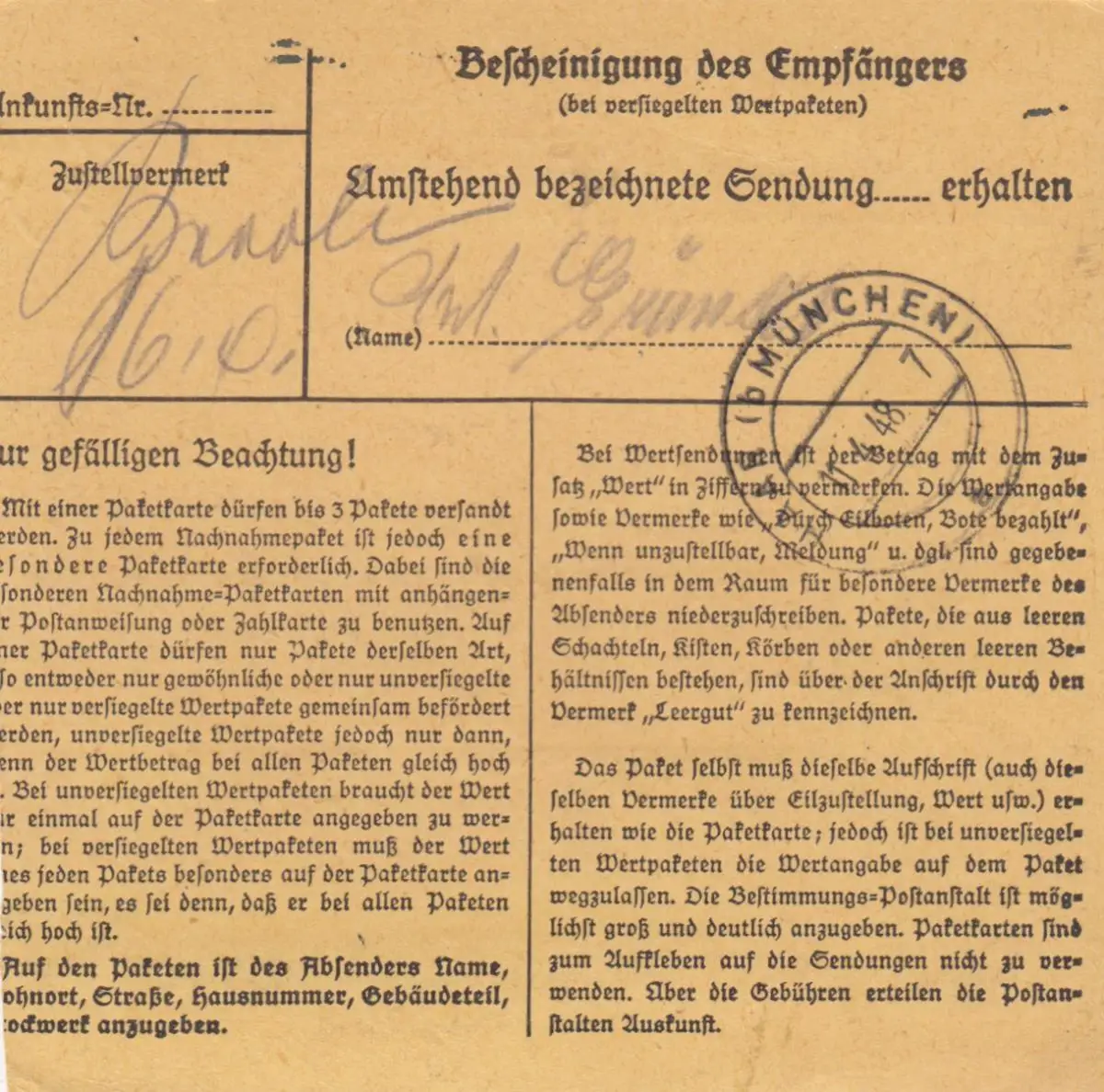Carte de paquet 1948: Hildesheim vers Eglfing, asile, carte de valeur