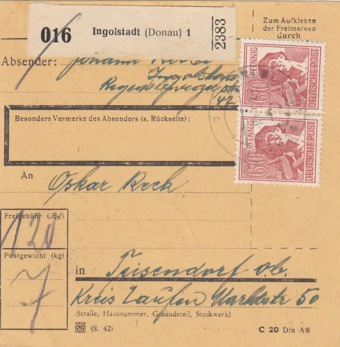 Carte forfait 1948: Ingolstadt vers Teisendorf