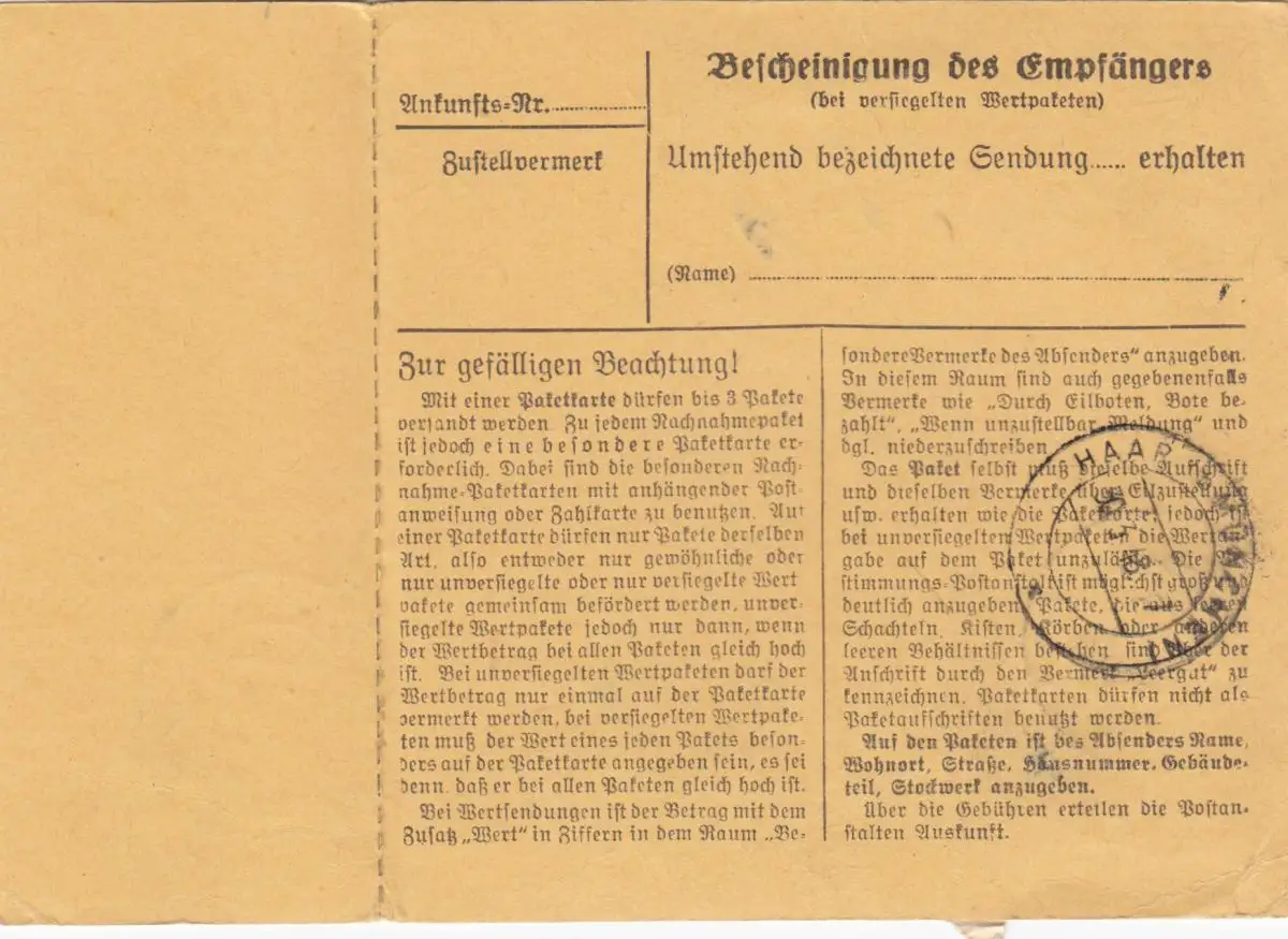 Carte de paquet 1948: Kaufbeuren vers Heilanstalt Eglfing