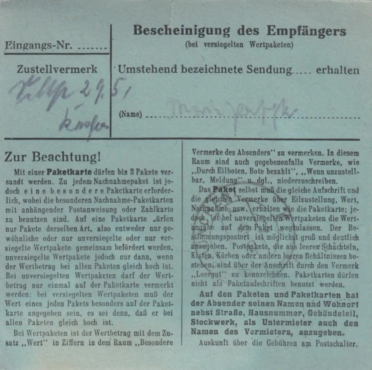 Carte de paquet 1948: Lubeck après Putzbrunn, formulaire spécial